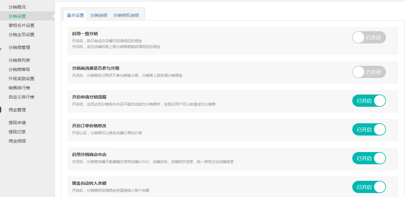 注意:當(dāng)商品或者類目傭金設(shè)置的比例為0,而只有分銷商等級(jí)設(shè)置了傭金比例,那么購(gòu)買該商品上級(jí)將無(wú)法產(chǎn)生傭金。