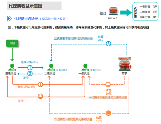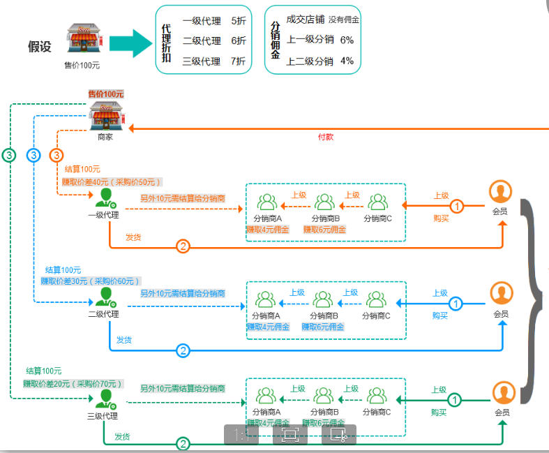 這里需要注意的是代理商發(fā)展下屬分銷商,傭金是由代理商來(lái)承擔(dān)。