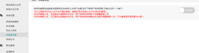關(guān)閉多客服以后,無(wú)匹配自動(dòng)回復(fù)自動(dòng)生效,用戶微信咨詢信息不會(huì)提醒客服人員