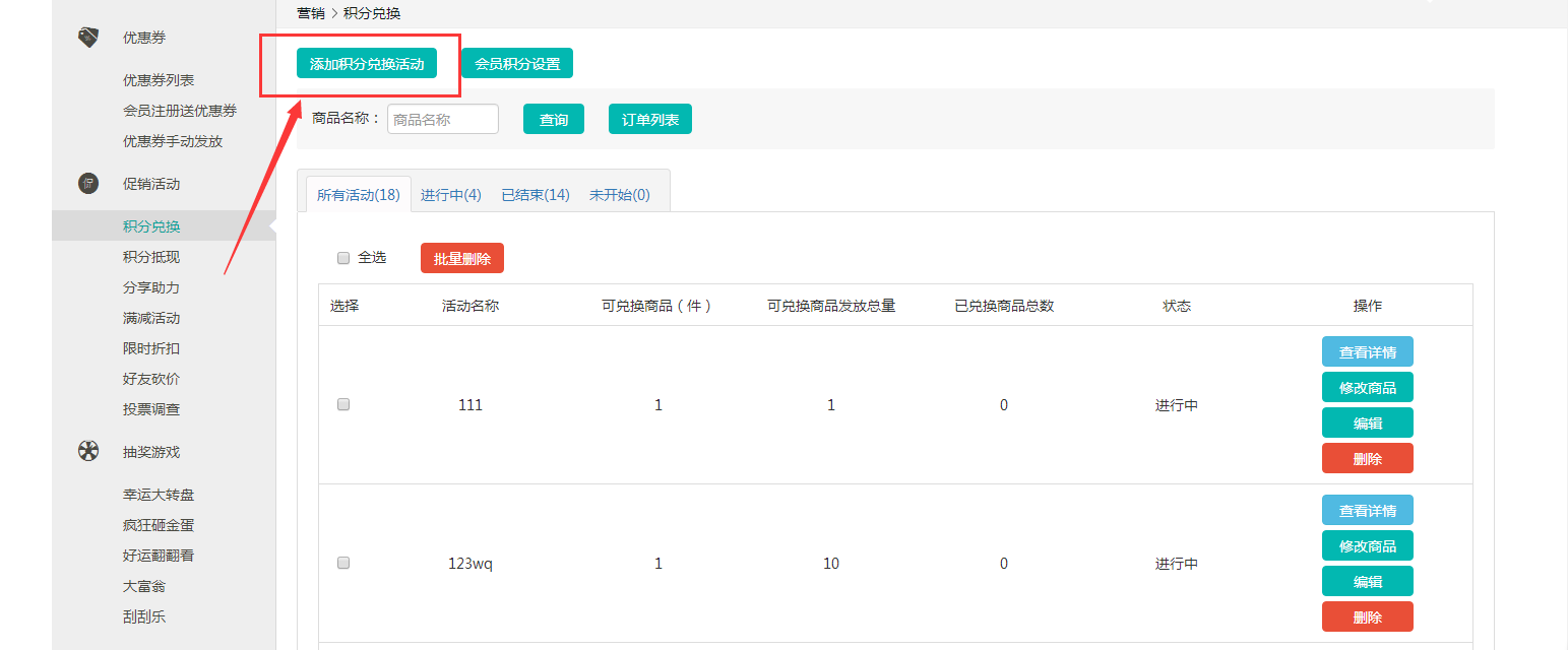① 點(diǎn)擊添加積分兌換活動(dòng)。