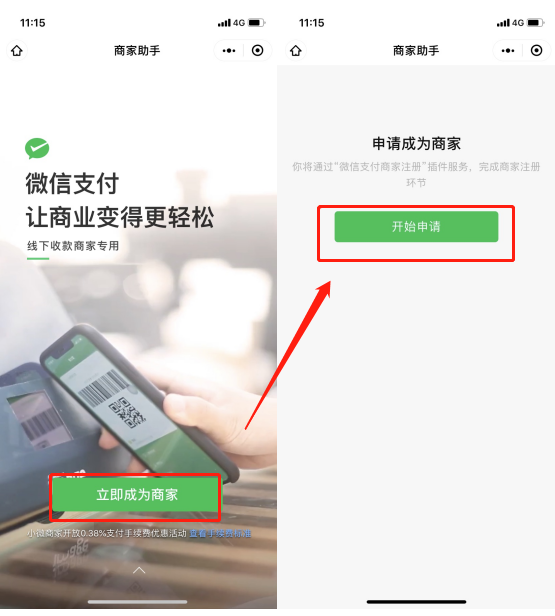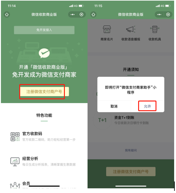 點(diǎn)擊注冊(cè)微信支付商戶號(hào),提示打開【微信支付商家助手】小程序,點(diǎn)擊允許。