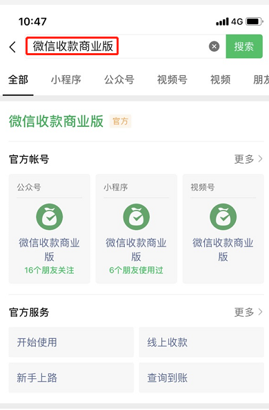 打開微信,打開【搜一搜】在搜索框里面輸入【微信收款商業(yè)版】,點(diǎn)擊進(jìn)入并注冊(cè)微信支付商戶號(hào)。