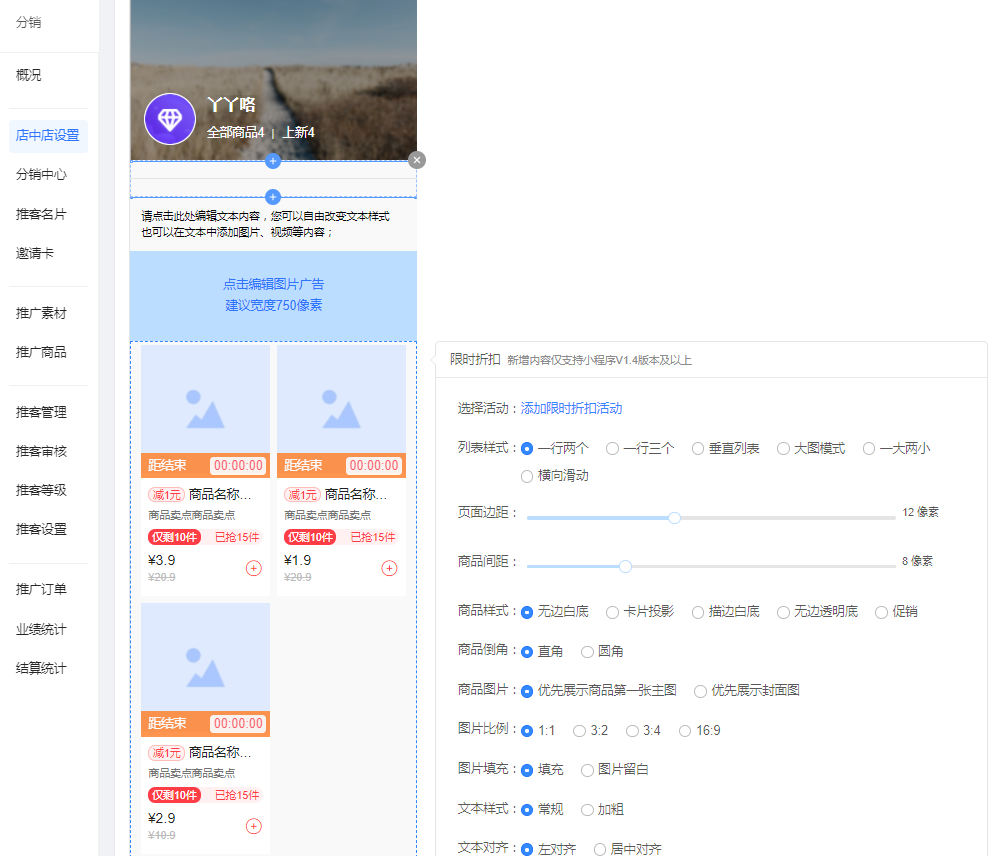 開(kāi)啟店中店,可以單獨(dú)配置推客小店的首頁(yè)、店名和LOGO