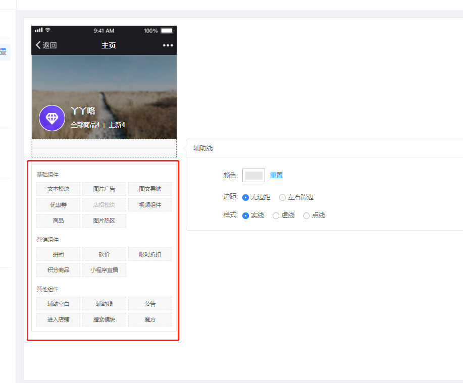 提供了20+裝修組件,可以自定義頁(yè)面效果,可視化裝修,所見(jiàn)即所得
