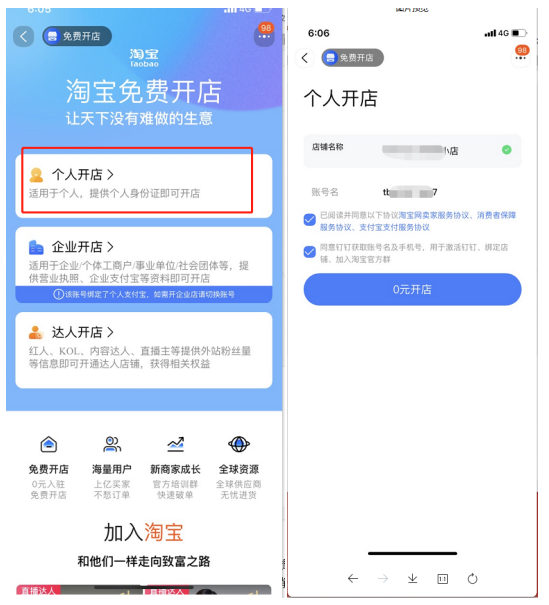 第三步:點(diǎn)擊個(gè)人入駐(第一次開店建議還是個(gè)人店)
