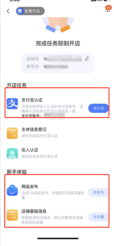 設(shè)置店鋪名稱、賬號,點(diǎn)擊0元開店
