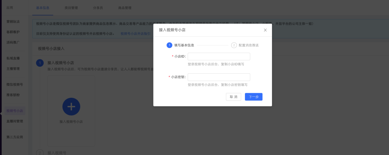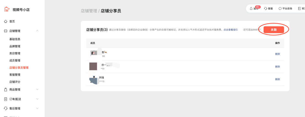 7.1添加店鋪分享員,登錄視頻號小店后臺進行關聯(lián)操作