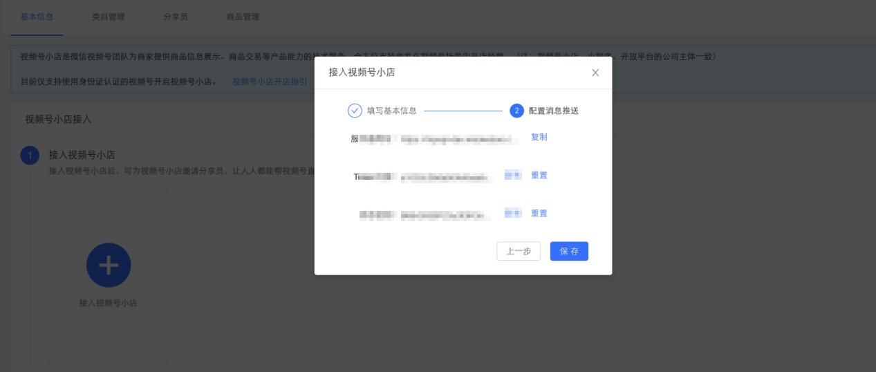 5.2登錄視頻號小店后臺,填寫服務器地址、Token令牌、消息密鑰,然后保存