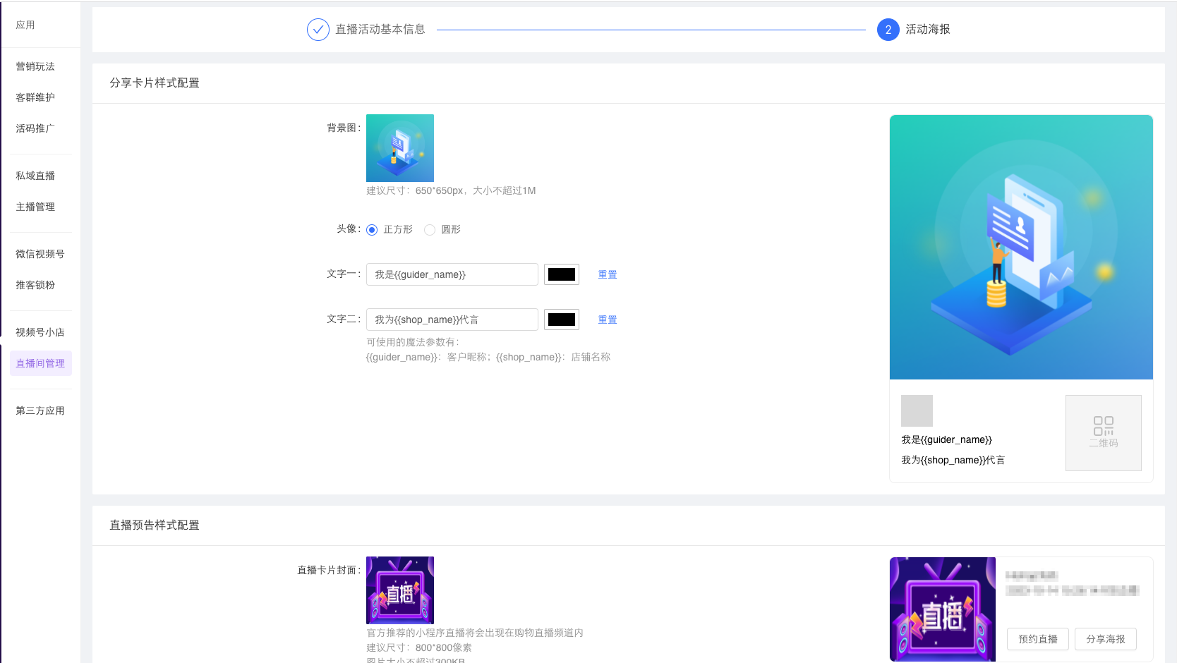 10.3新建直播間裂變,通過裂變活動客戶掃碼直接預約直播間,快速帶來直播間預約量
