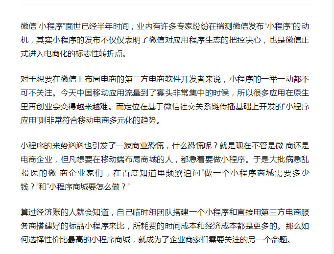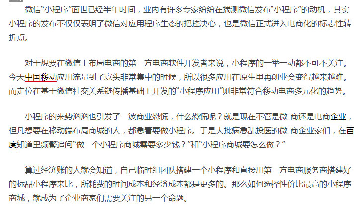 小程序的來(lái)勢(shì)洶洶也引發(fā)了一波商業(yè)恐慌,什么恐慌呢?就是現(xiàn)在不管是微商還是電商企業(yè),但凡想要在移動(dòng)端布局商城的人,都急著要做小程序。于是大批病急亂投醫(yī)的微商企業(yè)家們,在百度知道里頻繁追問(wèn)“做一個(gè)小程序商城需要多少錢?”和“小程序商城要怎么做?”