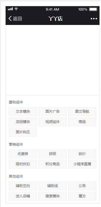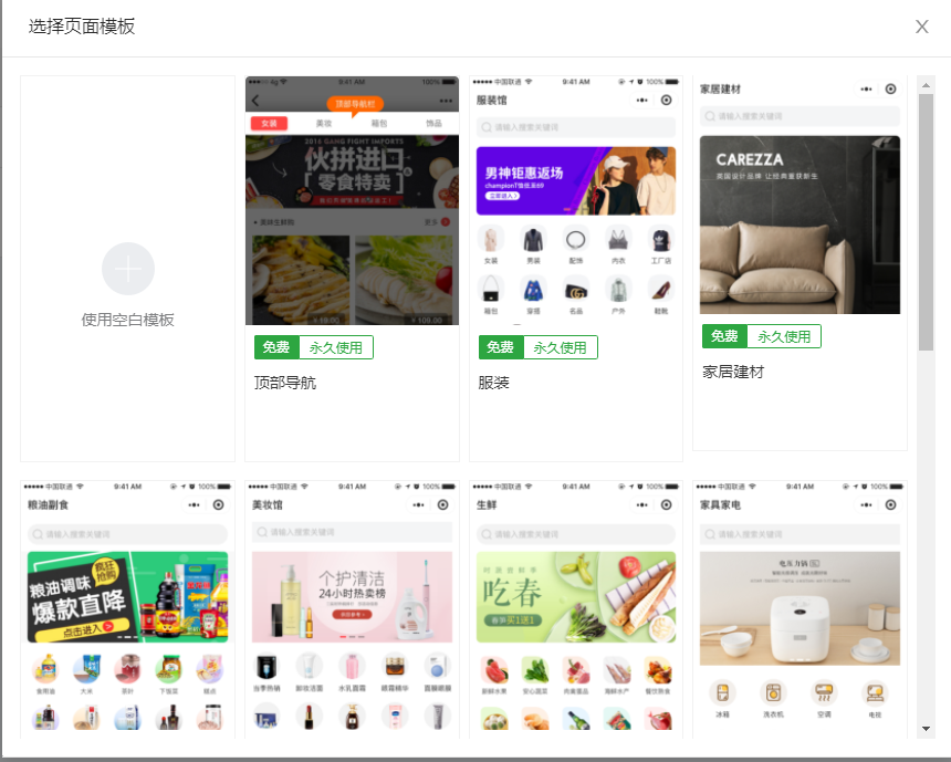若是沒有選到適合還可以直接試用空白模板,同幾十個裝修組件自定義裝修心儀的模板。