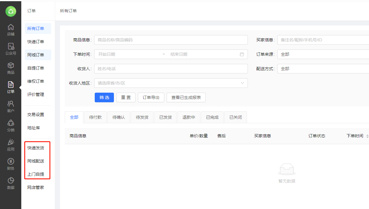 制定物流規(guī)則,如全國物流快遞發(fā)貨、同城配送、到店自提,貨到付款等;
