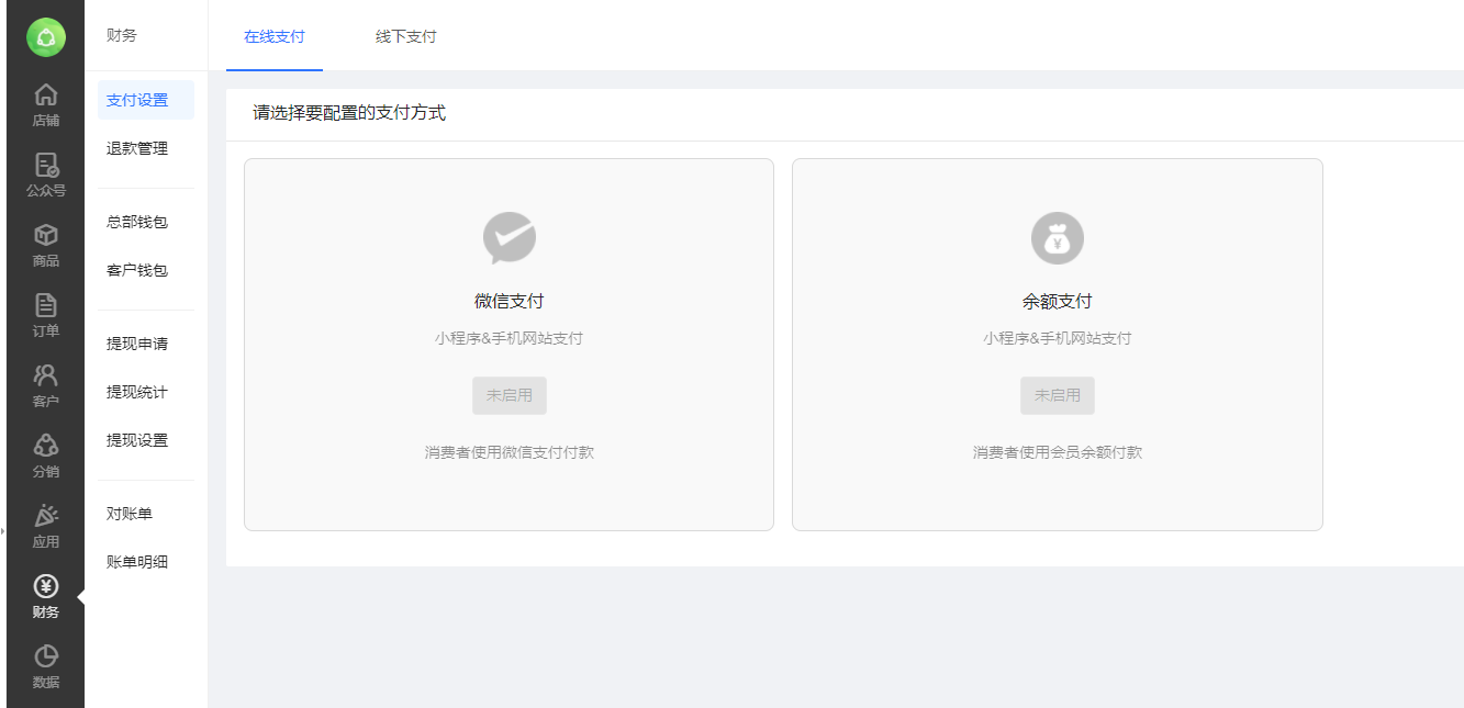 做小程序電商,都需要在線交易,那就需要配置獨立的微信支付。商家可自己申請商戶號,并在安菲云小程序商城系統(tǒng)中進行配置(交易費率一般在0.6%);