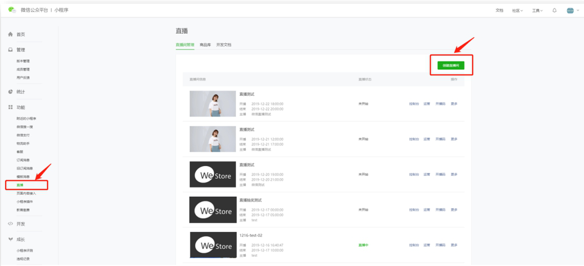 a.登錄微信小程序后臺(tái)https://mp.weixin.qq.com/--直播--創(chuàng)建直播間