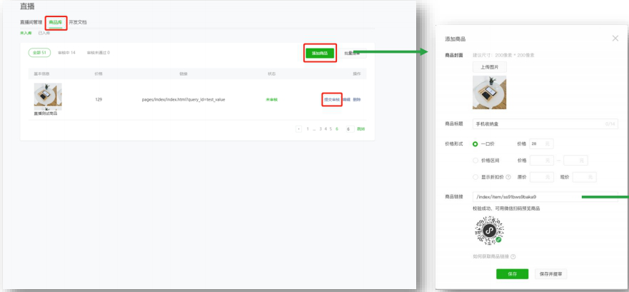 (只有已經(jīng)審核通過的商品才可以正常售賣,審核時(shí)間1-7天,建議每次直播之前,先提前錄入商品并提交審核)