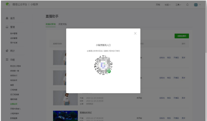a.主播直接掃碼開播碼進(jìn)入(微信小程序后臺(tái)--直播--開播碼)