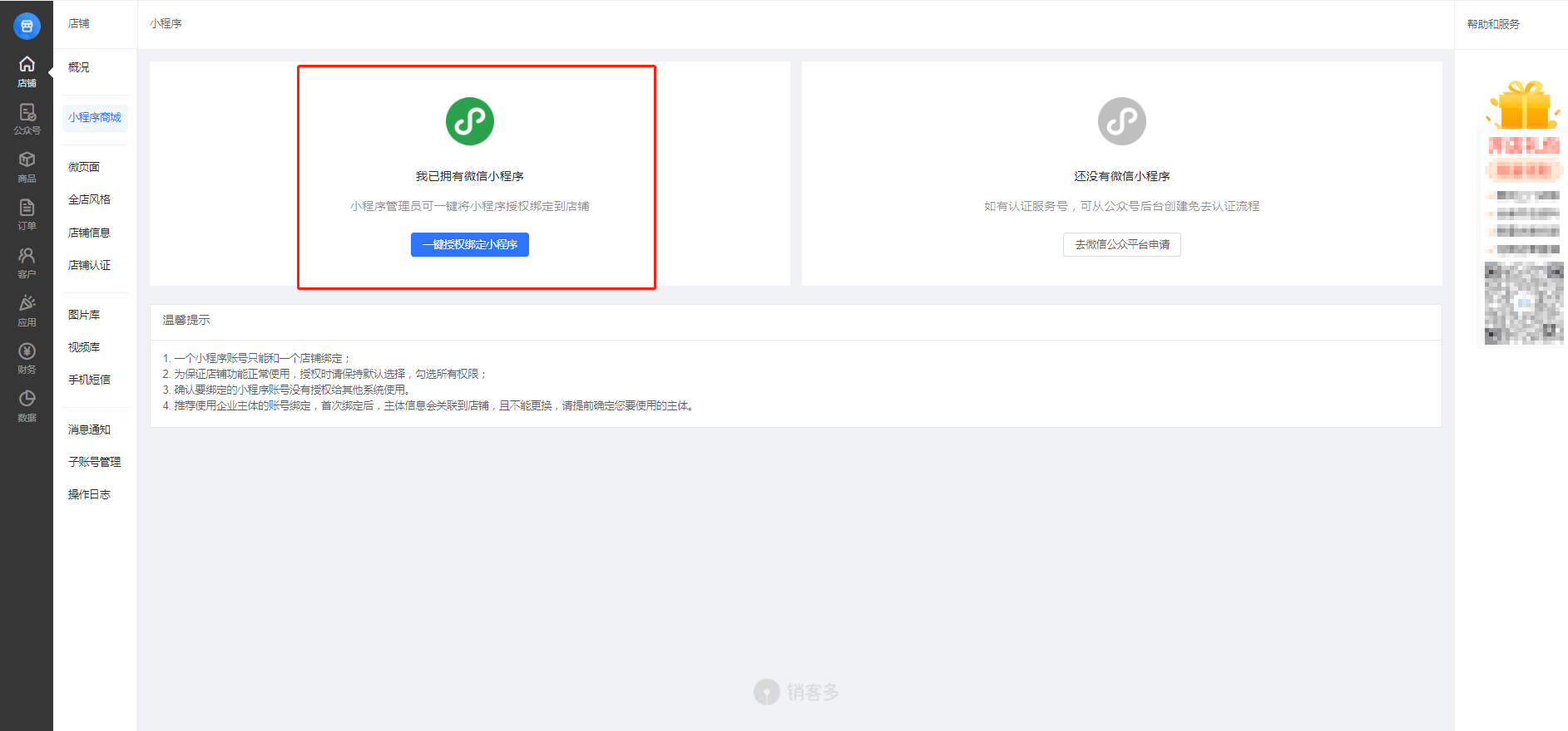1. 一個小程序賬號只能和一個店鋪綁定;